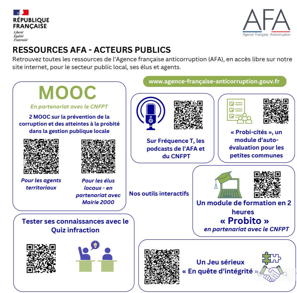 L’AMF et l’AFA ont également réalisé ensemble un guide pratique, résolument opérationnel, destiné à aider les élus du bloc communal à concevoir, mettre en œuvre et déployer un dispositif de prévention des atteintes à la probité adapté à la taille et aux moyens de leur collectivité. Il s’agit d’un outil précieux pour structurer une démarche de prévention réellement efficace.