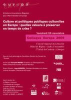 L’association Europa organise son traditionnel colloque sur le thème des politiques culturelles en Europe le 20 novembre 2009 à Limoges.